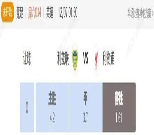 竞足 周六034 英超 利兹联VS利物浦