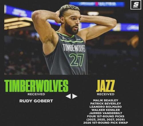 2022年夏天,森林狼送出比斯利、贝弗利、凯斯勒、范德比尔特、莱博尔马罗、4个首轮(2023、2025、2027和2029)、1个首轮互换权(2026),10换1得到戈贝尔。客观来说,森林狼两次打进西决确实有戈贝尔的功劳,但球队已经掏空未来。