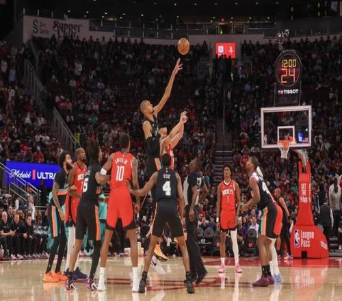 火箭主场迎战马刺,火箭先发:杜兰特、史密斯、申京、奥科吉、阿门!马刺先发:尚帕尼、巴恩斯、文班亚马、福克斯、卡斯尔!
