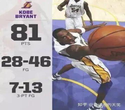 2006年1月22日,科比得到81分帮助湖人 122-104击败猛龙 ,只有威尔特-张伯伦在1962年代表费城勇士得到更高的100分。